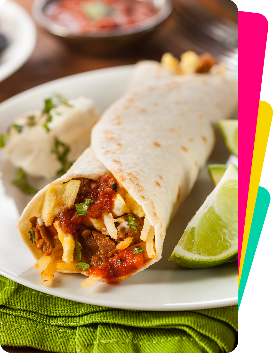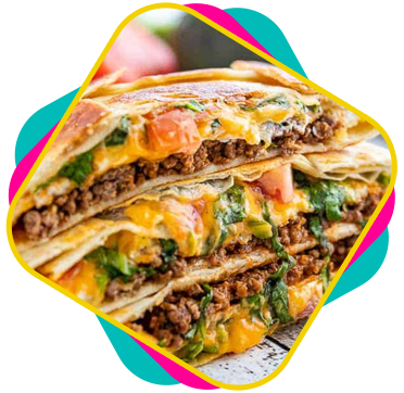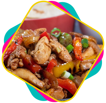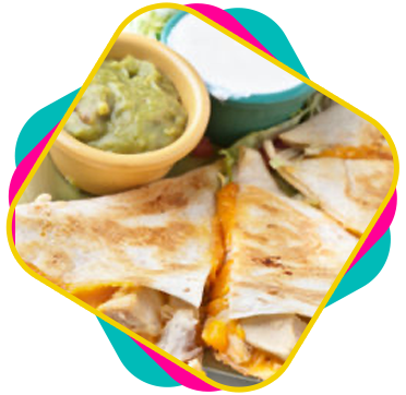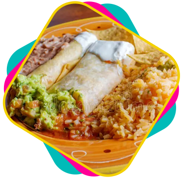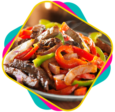 Fajita beef or chicken, beans, lettuce, sour cream and guacamole