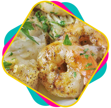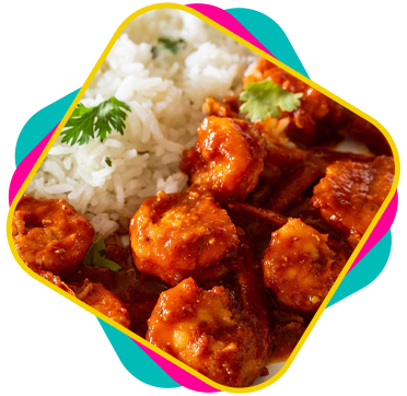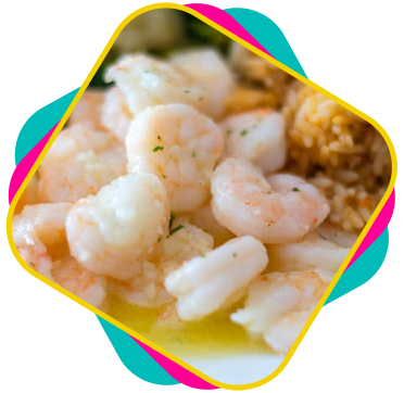 Shrimp boiled potato, served with lime, onion, cilantro and rice.