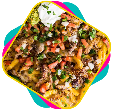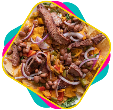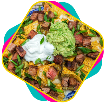 Grilled steak over tortilla chips, topped with nacho cheese, guacamole, sour cream, pico de gallo and queso fresco.