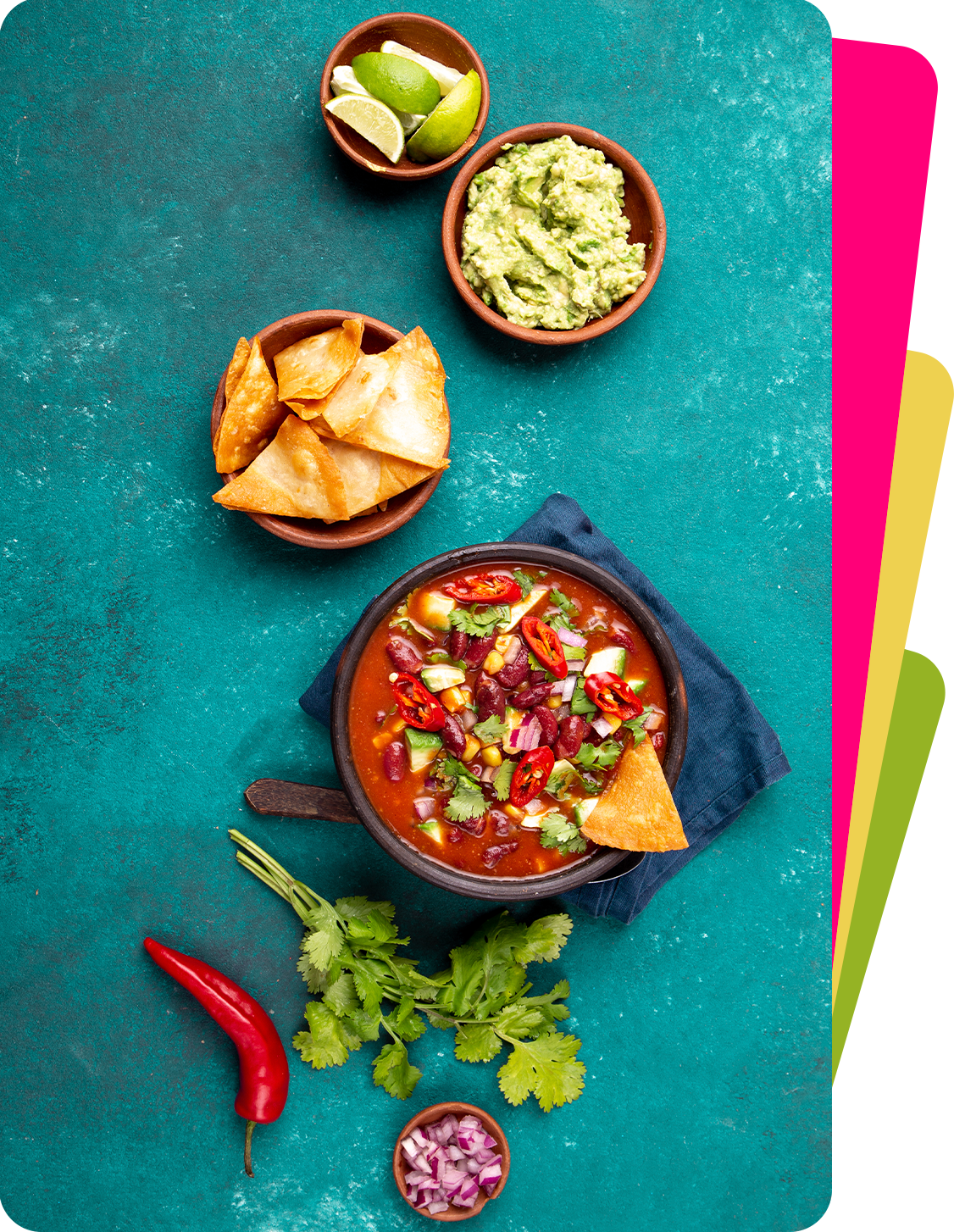Vegetable soup with tortilla chips and cheese Served with rice, pico de gallo and flour tortilla